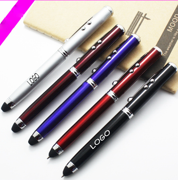 4 in1 Stylus, Laser Pointer, LED Light Multifunctional PenProduct name : 4 in1 Stylus, Laser Pointer, LED Light Multifunctional Pen Item : TH2539 4-in-1 stylus, pen, laser pointer, and LED flashlight with batteries. There are two buttons, one for powerful red laser pointer and one for bright LED light. Stylus designed to work on all capacitive touch screens. Customized logo are welcome. Really a good gift to your business partner or as a promotion. Similar pen with different shapes, sizes and functions are available in our company. Please contact us if you are interested in our products.material: Metal Size:4.7 " x 0.4 " Product color: Red, Blue, Silver, Black Imprint method:Silkscreen Location: Price only include one color imprint on one location and freight cost to door Production lead time 20 days Price details