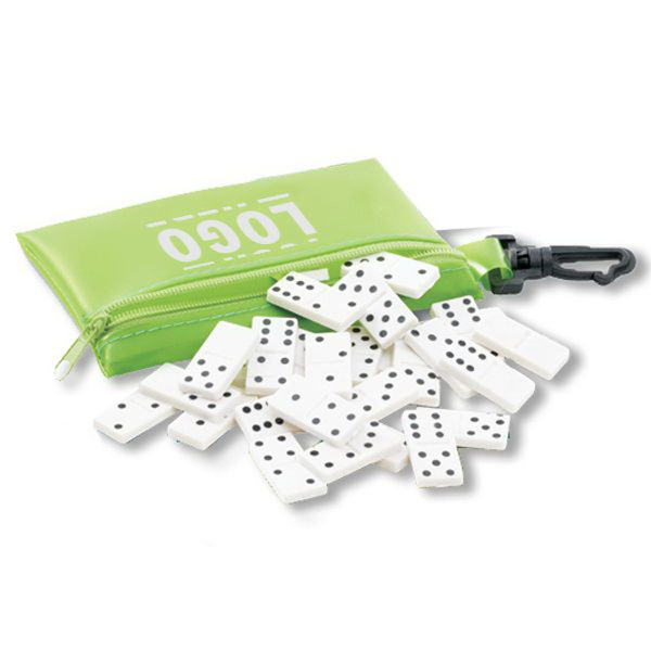 Traveler DominosProduct name : Traveler Dominos Item : TP1322 Mini domino set in translucent zippered case with instructions. Includes 28 dominos (1" each). Case measures 4 3/4" x 3 1/4".material: Plastic Size:4 3/4 " x 3 1/4 " (none) Product color: custom Imprint method:Silkscreen Location: Price only include one color imprint on one location and freight cost to door Production lead time 20 days Price details
